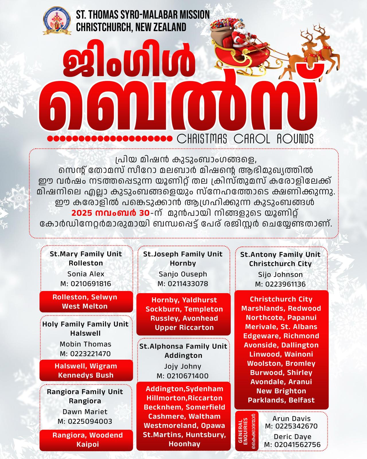 For Carols please contact corresponding unit co-ordinators