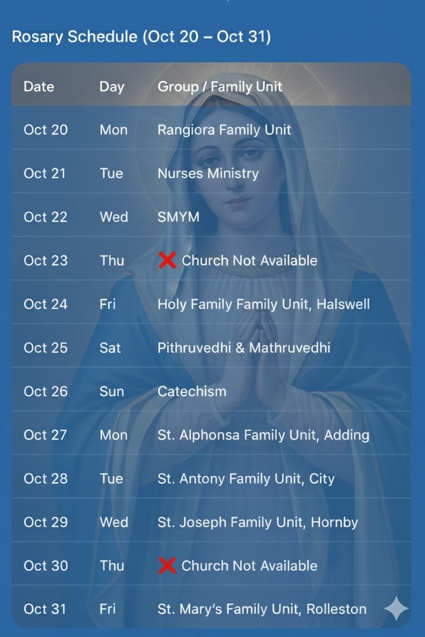 St. Thomas Syro-Malabar Catholic Mission in Christchurch now serves over 800 members across 300 families. We offer Holy Qurbana in Malayalam on Fridays and Sundays, a vibrant Sunday School, and various youth and community programs. We are deeply rooted in the Syro-Malabar tradition, emphasizing spiritual growth, community support, and cultural preservation. The mission is under the administration of Syro-Malabar Eparchy of Melbourne.